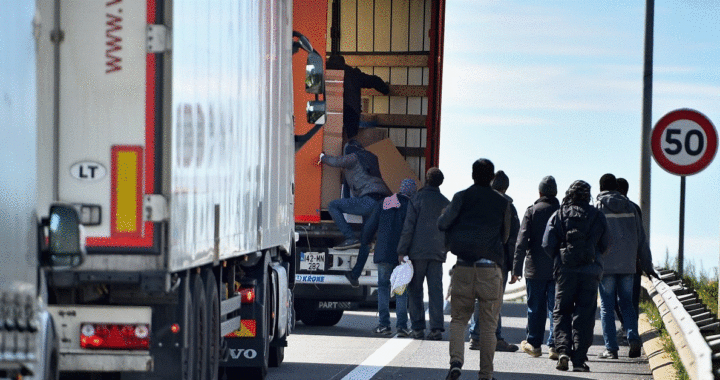 フランスの農民がパス・ド・カレーのA1高速道路で「輸送トラック」を検問している。